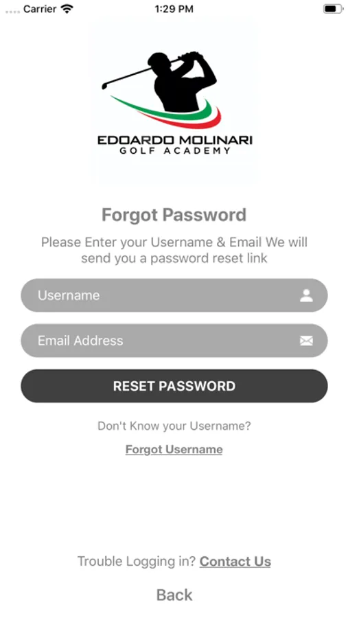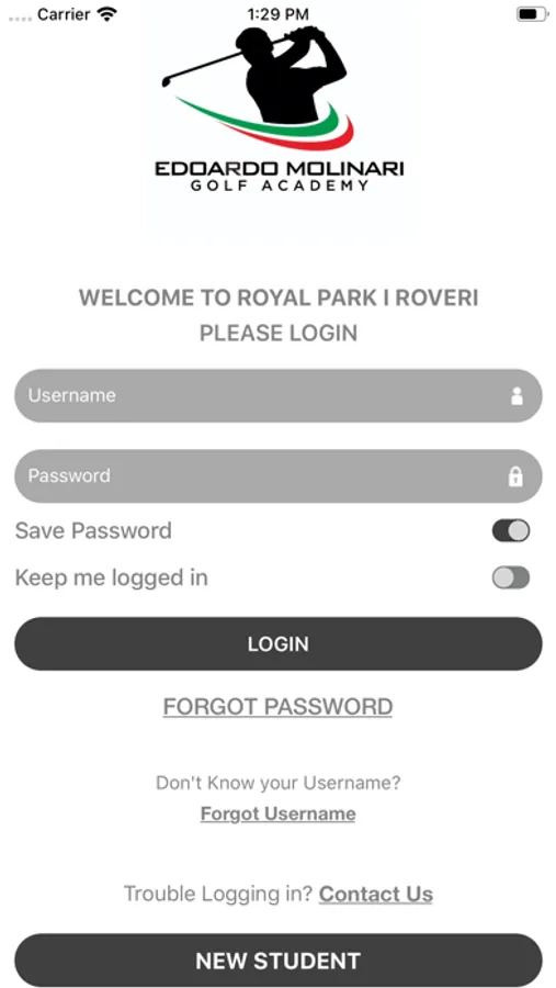Coaches - you have a subscriptionwith Edoardo Molinari Golf Academy, you’ll need your log in credentials to access the App features.