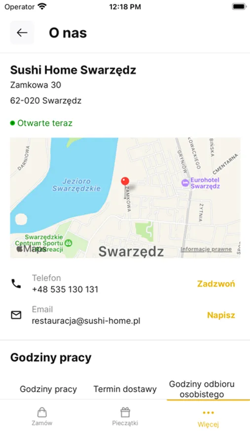 Oprócz zamawiania online aplikacja pozwala sprawdzić: