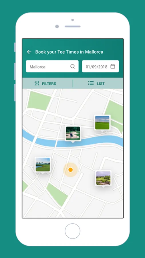 · View the different golf courses and clubs on the icons and locate them on the map.