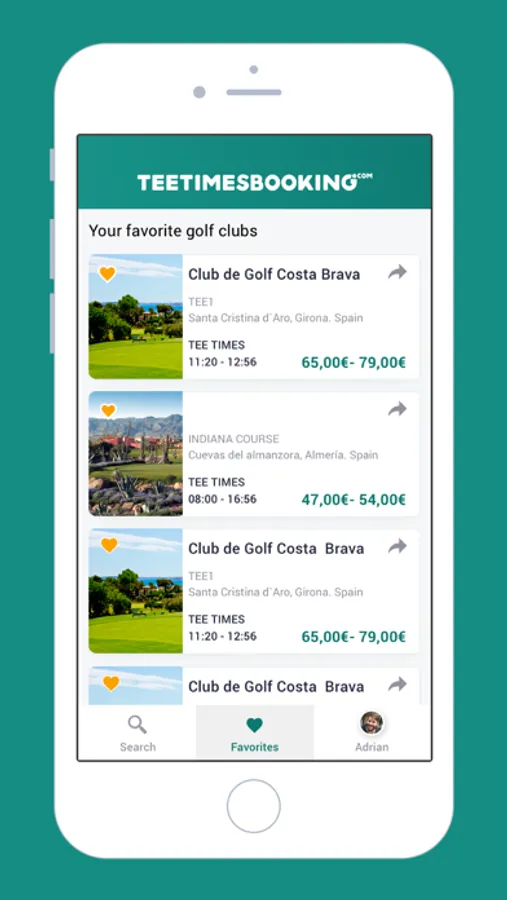 · Share the Teetimes on social networks.