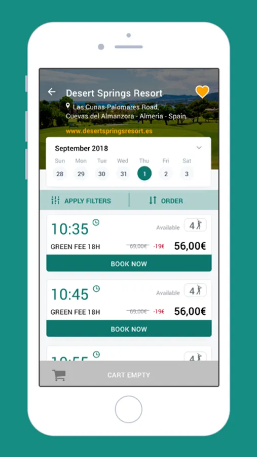 Making a booking is as simple as logging in to the app and using the search engine or map to find the course or club that best suits your needs. You can select the date and the time of the bookings, as well as the number of players. The information is saved in the shopping cart and you can modify it or delete it at any time.