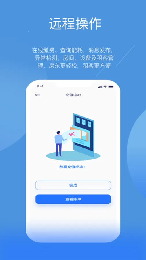 辰域智控要用于对电表的管理充值缴费, 房东可以管理电表, 管理租客, 管理电价, 对电表进行充值, 拉合闸等功能, 租客可以查看房东分配给他的电表, 并对电表充值使用, 查看电表使用情况.