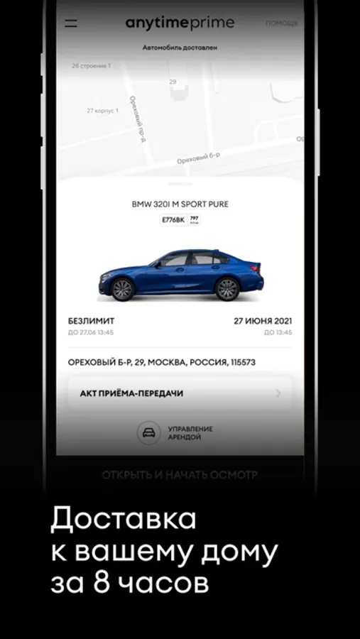 — укажите адрес доставки, и в течение 8 часов или в другое удобное вам время автомобиль будет ждать вас в месте назначения;