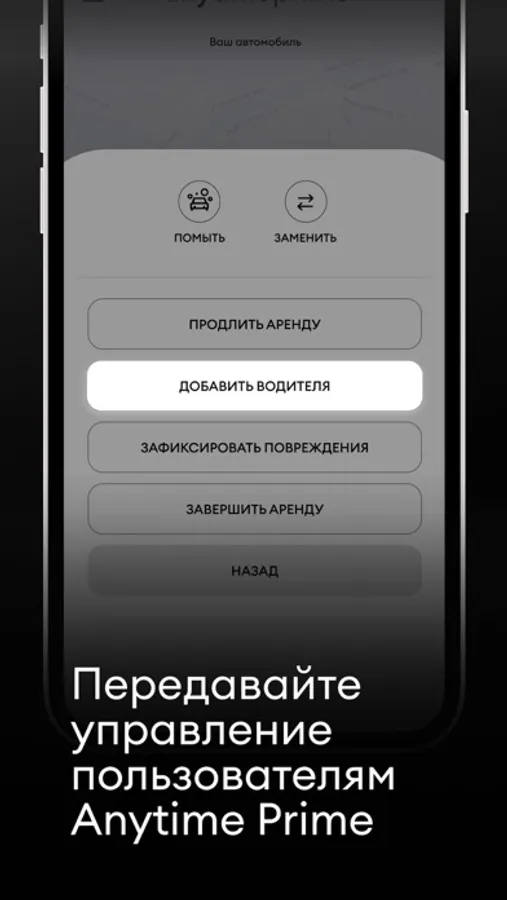 — меняйте автомобиль, если изменились планы: выберите и оформите замену прямо в приложении;
