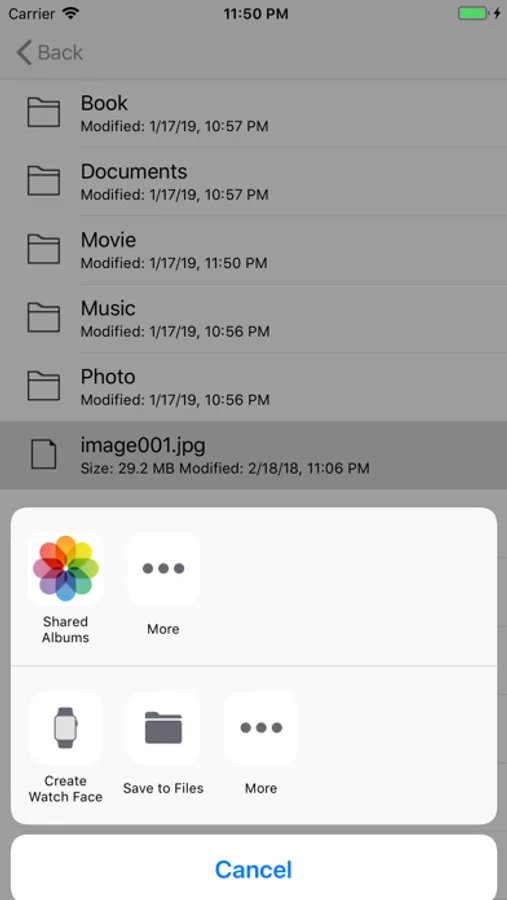 NAS File Transfer is an app to transfer file from Samba (SMB) NAS network drive, file server, windows shared folder, mac shared folder to appropriate app in iOS device.