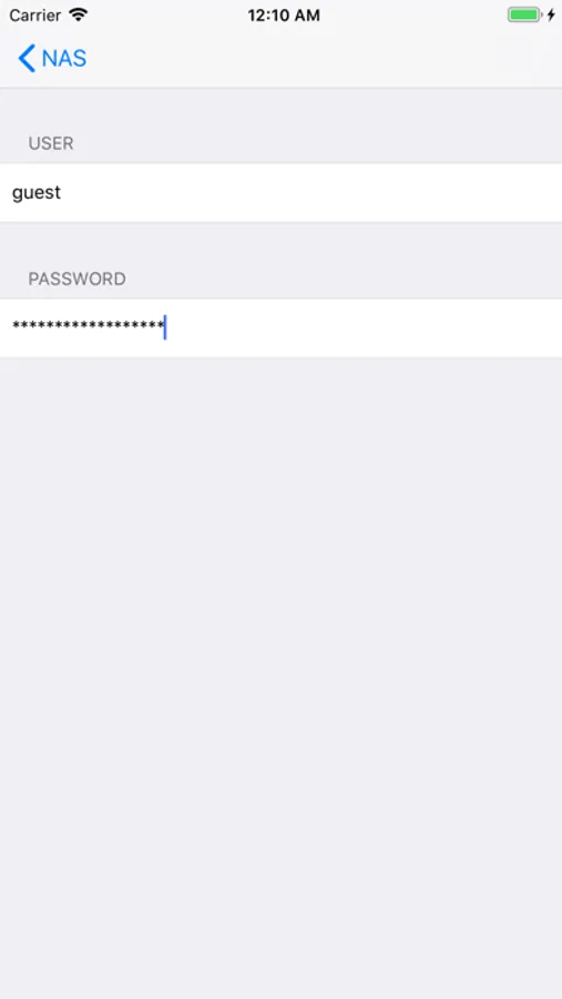 If the file server requires the login, tap the 'Info' icon on the right of file server name and enter the user and password.