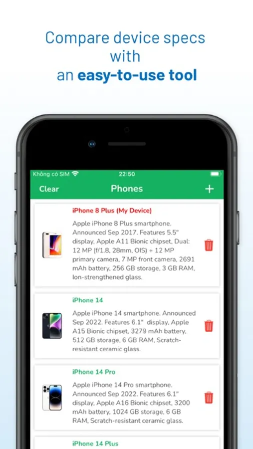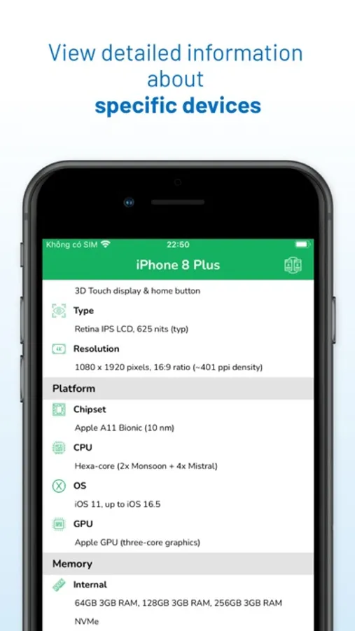 PhoneFinder is an extensive ios device specs database. Key Features include: