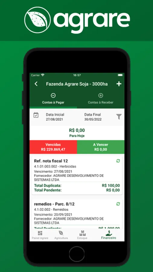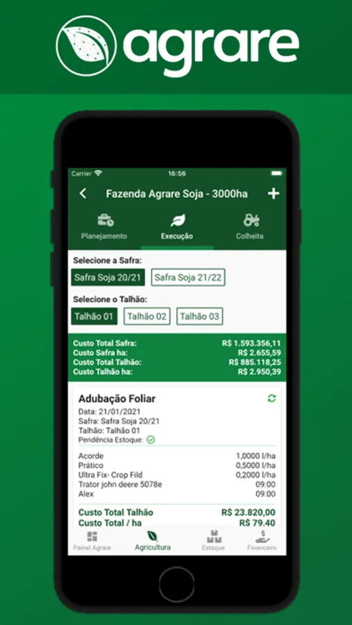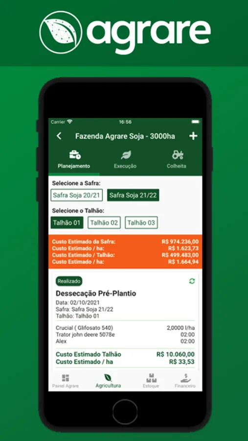 Com o aplicativo AGRARE tenha total controle das suas propriedades rurais de maneira simples e funcional, de qualquer lugar com ou sem internet.