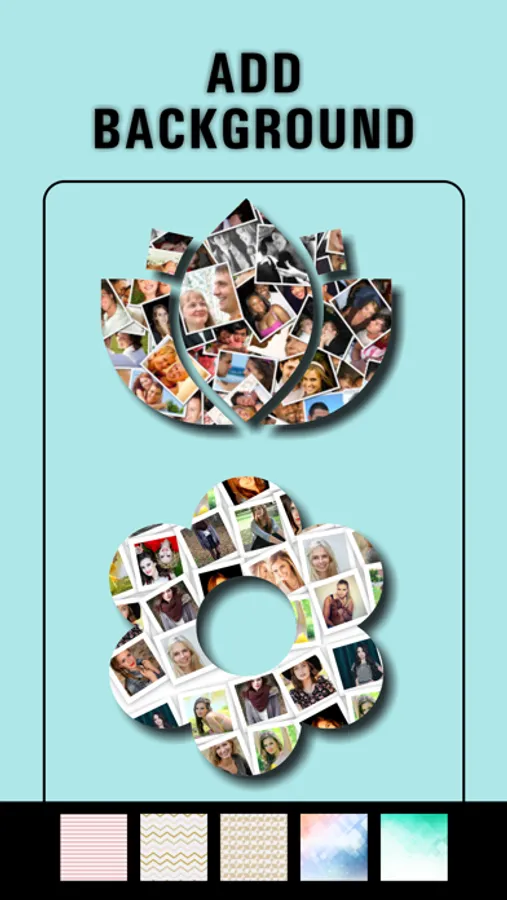 Shape Collage Photo Editor is an automatic photo collage maker that allows you to create photo collages in different shapes in just few seconds. You can make picture collages in the shape of a heart, birds, apple, butterfly, 20+ shapes. Use Shape collage photo editor app to make a beautiful and unique photo shape collage in any shape. Apply photo effects on photo to edit images. You can also select backgrounds of collage accordingly from 20+ backgrounds for photo collage.