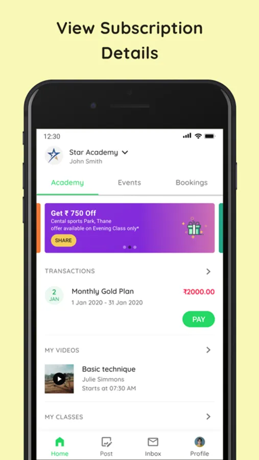 spyn CONNECT is an app for subscribers of gyms/studios or students of coaching academies to view their purchased plans, attendance, transactions, performance reports and messages.
