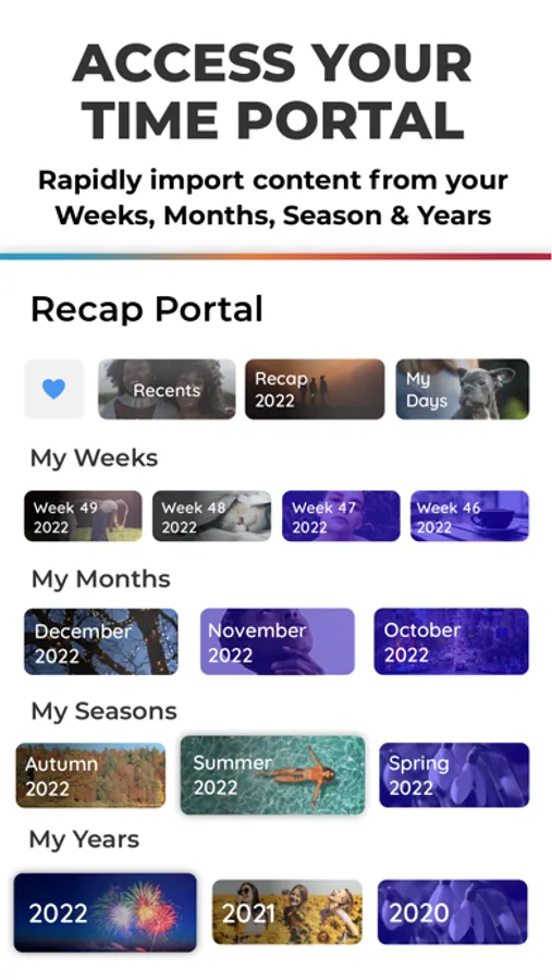 - Recap Time Portal - View your content history by Week, Month, Season & Years!