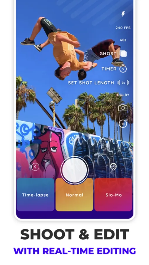 Switch between time-lapse, normal and slo-mo as you shoot!