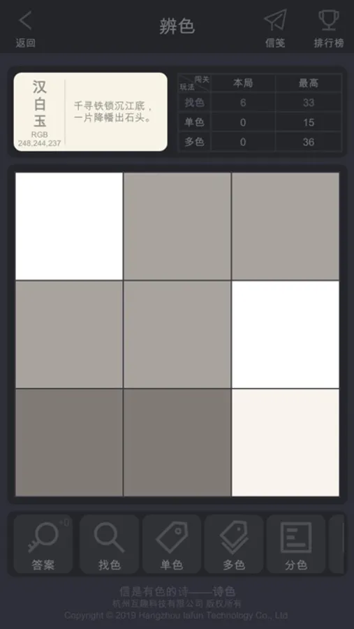 1,【找色】该玩法的精妙之处在于,每次闯关除了需找出与指定颜色相同的色块外,还可以阅读、浏览多句诗词、颜色日记。
