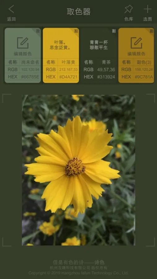15,支持获取照片主色系及副色系,支持自由取色、自创建色卡、编辑颜色信息,支持图文色合一的混排作品生成。