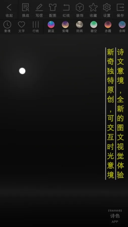 6,支持多重手势操作,缩放、旋转、移动诗词/配图/脚注,增加整个创作的可能性,释放创意和灵感