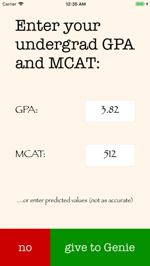 Apply smart to medical schools with the PreMed Genie! This app takes in your application information (GPA, MCAT, extracurriculars, etc.) and creates a personalized list of medical schools that you should apply to.