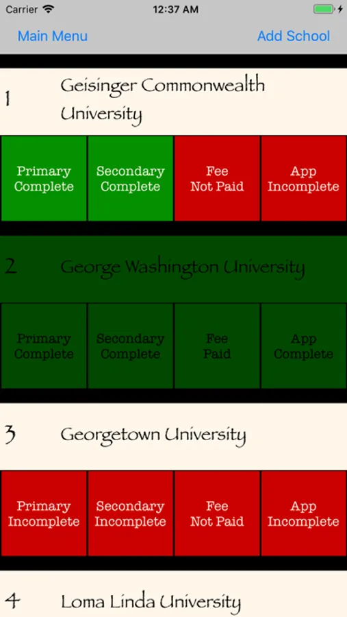 With the school list manager, keep track of your applications through the cycle. If you want to add additional schools, feel free to add custom schools to your list (or remove schools that you do not like).