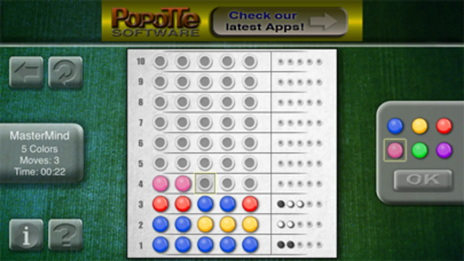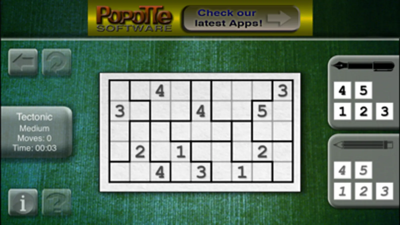 Includes popular games like Sudoku, MasterMind, PictureCross (also known as Japanese crossword), Solitaire, MineSweeper, Shangai (also known as Mah-Jong) and Tectonic (also known as Suguru).