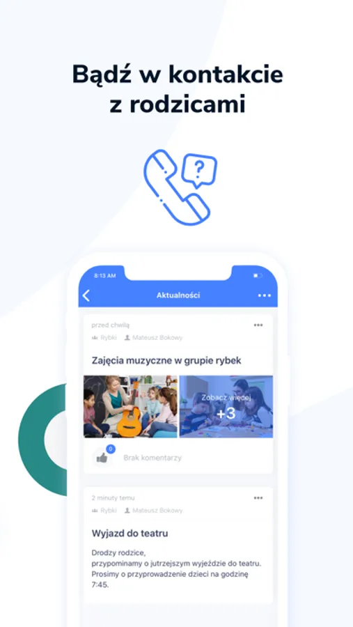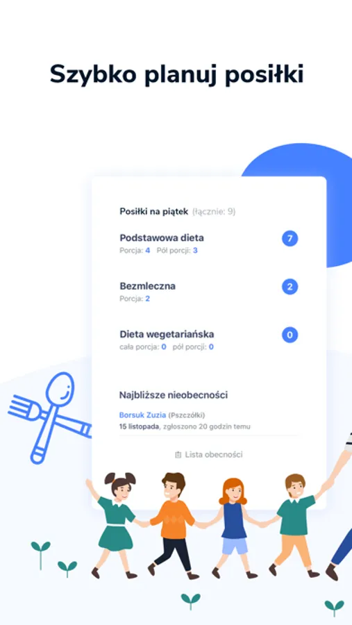 Poprzez aplikację mobilną rodzice mogą zgłaszać nieobecności dzieci. Na ich podstawie aplikacja przygotuje i przekaże zamówienia do cateringu. Na koniec miesiąca automatycznie wygeneruje rozliczenia, wystawi fakturę i prześle ją do rodziców! A wbudowany komunikator pozwala być w stałym kontakcie z rodzicami oraz pracownikami.