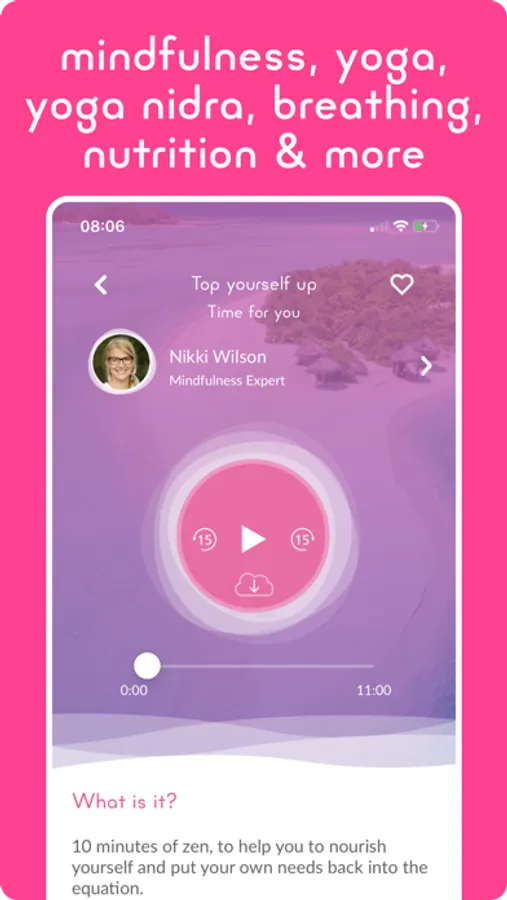 55+ audio, 30 videos, 150+ quick reads across mindfulness, breathing exercises, yoga, yoga nidra (for sleep/relaxation), mantras, nutrition and psychology.