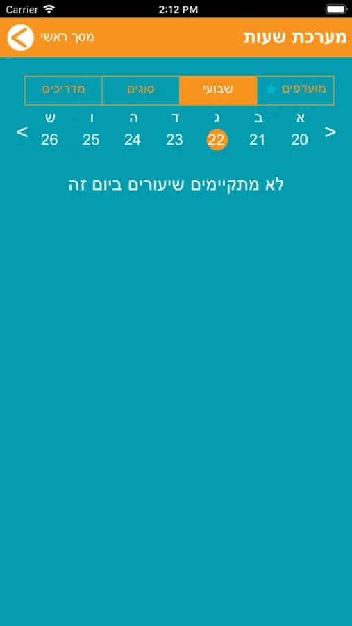 פניה ישירה למנהל האתר, הצגת מערכת השיעורים במרכז.