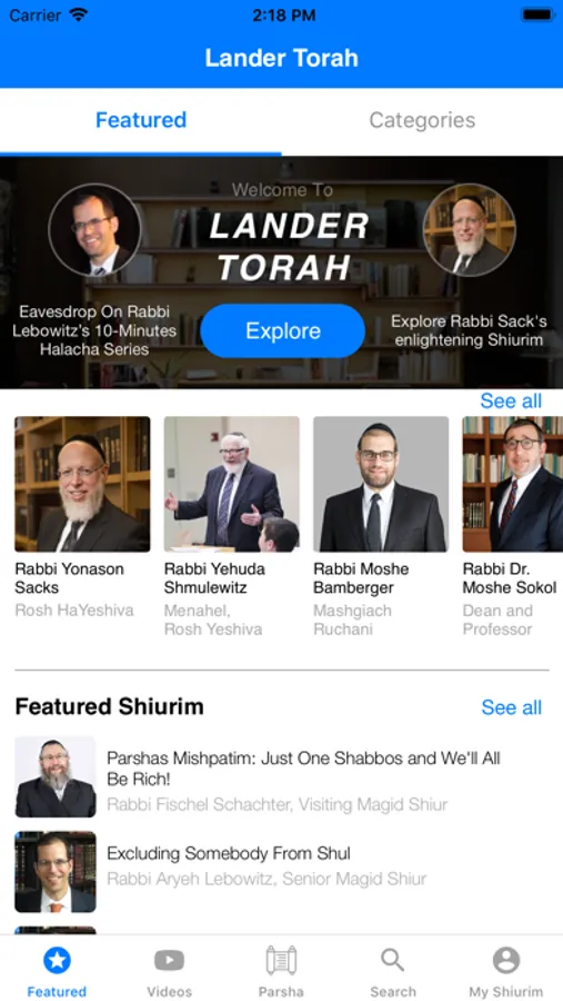 We are excited to introduce Lander Torah, a mobile app featuring our Lander rebbeim. Listen to Rabbi Sacks’ gemara shiurim, Rabbi Shmulewitz’s parsha shiurim, Rabbi Bamberger’s mussar shiurim, Dean Sokol’s machshava shiurim, Rabbi Lebowitz’s halacha shiurim, and so much more!
