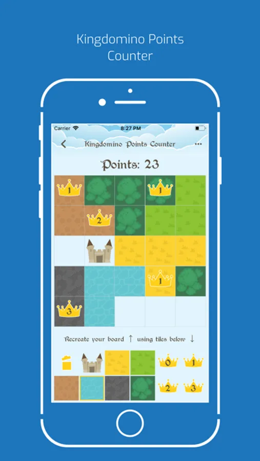 - Kingdomino Points Counter: Quickly and easily recreate your Kingdomino board in UpBoard and see how many points you get in that easy to learn and fast-paced game for the whole family. The application will count points in 5x5 and 7x7 size game.