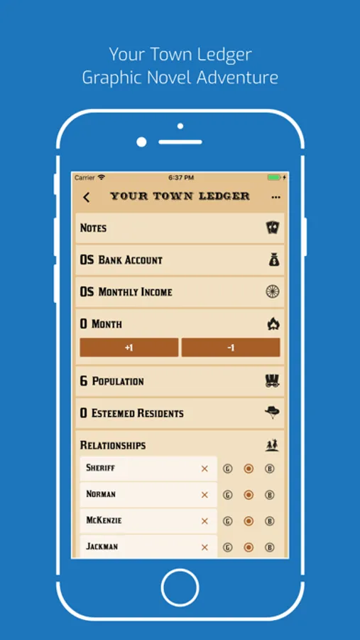 - Your Town Ledger: Track all ledger pieces of information like money, relationships, popularity, month and many more from Your Town Graphic Novel Adventure. With UpBoard you will only need a map to plan your town. Other aspects of the game can be tracked in the app.