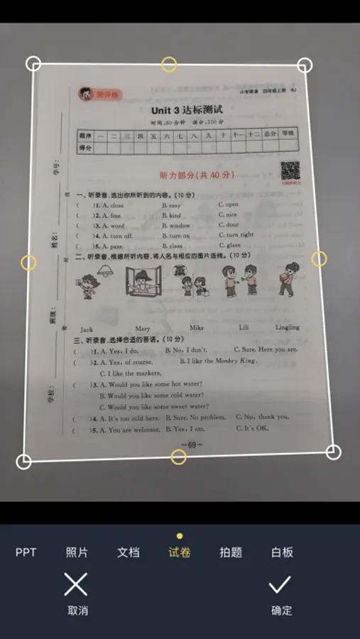 2. 手写痕迹擦除,一键生成空白试卷。