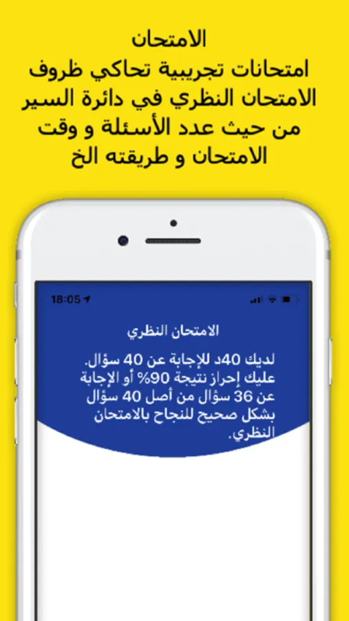 امتحانات تجريبية: يمكنك استخدام التطبيق للقيام بامتحانات تجريبية للاعتياد على أجواء الامتحان النظري الحقيقي.