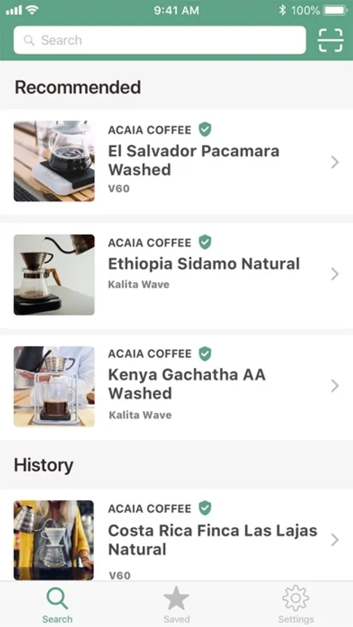 Welcome to your new scale! The Acaia Pearl S pairs with all of our apps but this is the one to use to set up the scale. If you don’t have a Pearl S, you can still browse and create recipes.