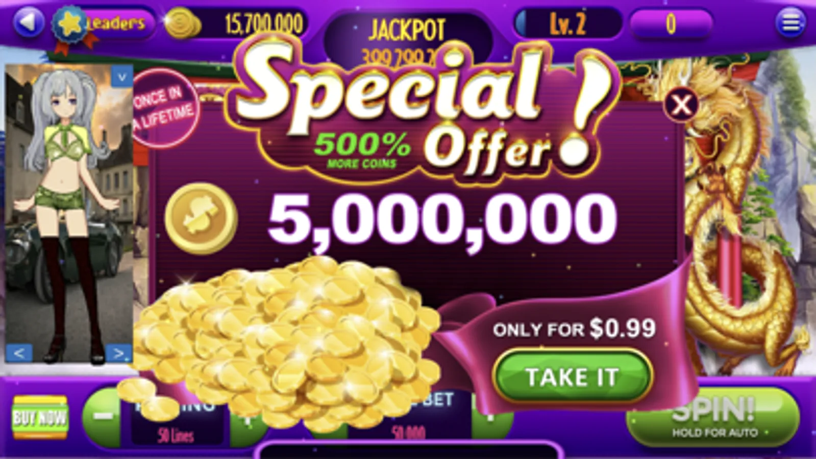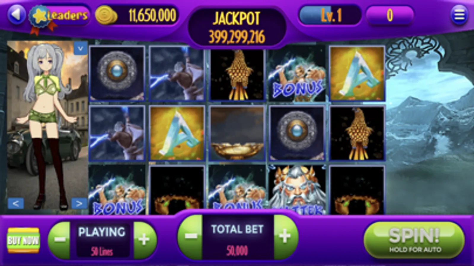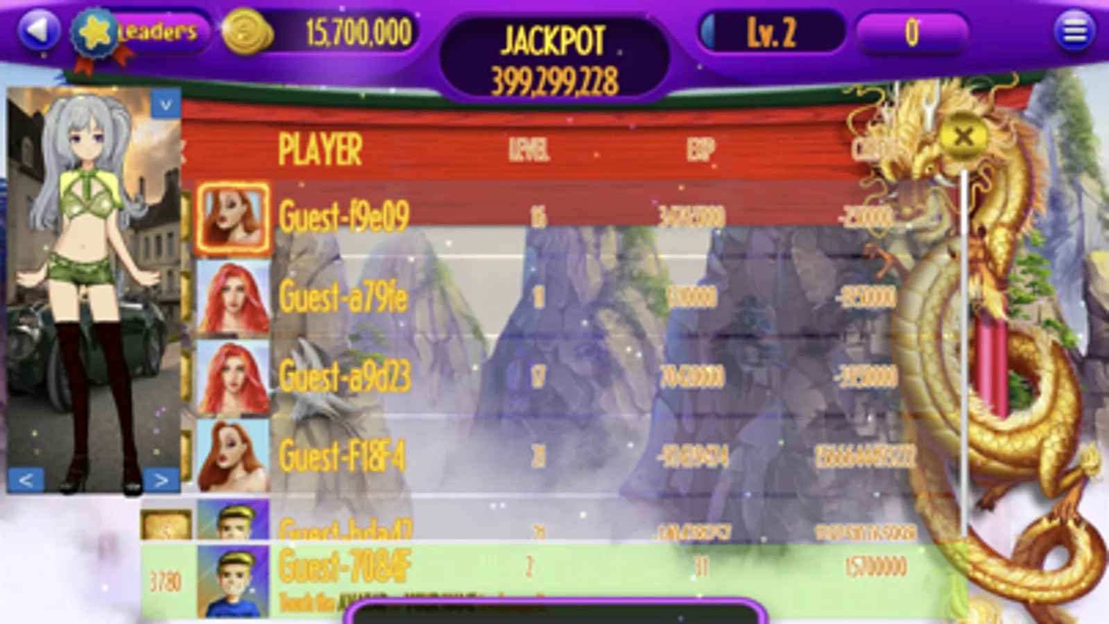 Exciting Vegas casino slot games in one casino app. Free credits. Fabulous wins -- free spins with wild symbol substitution -- fun wheel & pick bonus games. A personalized avatar provides added enjoyment and excitement during game play and different scenes unlock at level 4, 8, & 12.