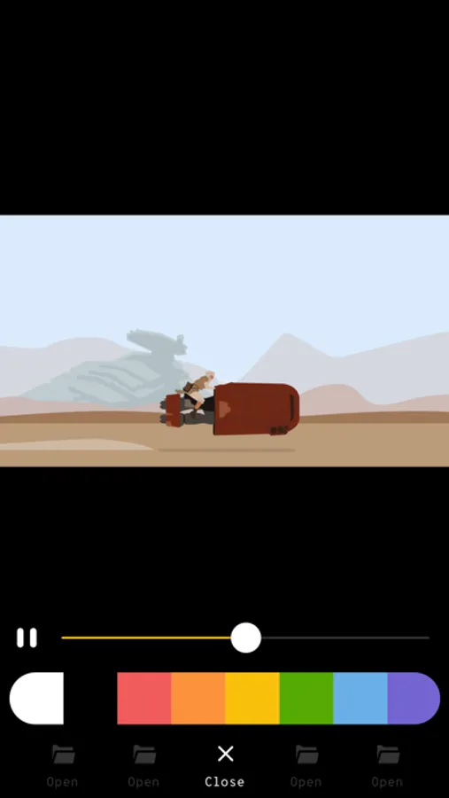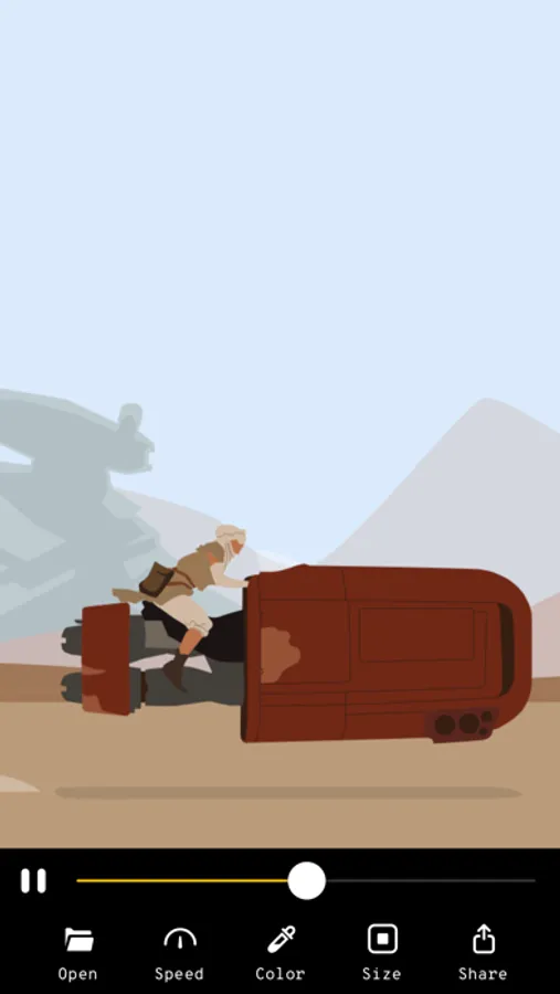 You can play the animation in an endless loop to see if all details are perfect. You can scrub through the animation to view it frame by frame. You can pause at any moment by tapping the animation. You can also change the playback speed, background color and size. View the frame rate to know your animation is actually exported with the right frame rate. Finally when you are happy with your animation, you can share it using email, messages or your favorite app.