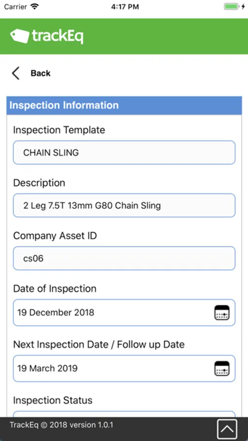 TrackEQ is a powerful but simple compliance and asset tracking platform that allows businesses real-time visibility of asset status information. Providing you with precise status and inspection data on each and every asset helps businesses of all sizes to take control of their assets, helping to ensure safety and removing costly mistakes with worn and unsafe equipment.