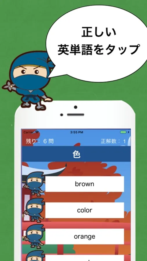 単語は動詞や形容詞、数字、飲食物など全部で17のカテゴリーに分類されています。クイズはカテゴリー毎のステージ制になっており、合格ラインをクリアすると次のステージに進みます。