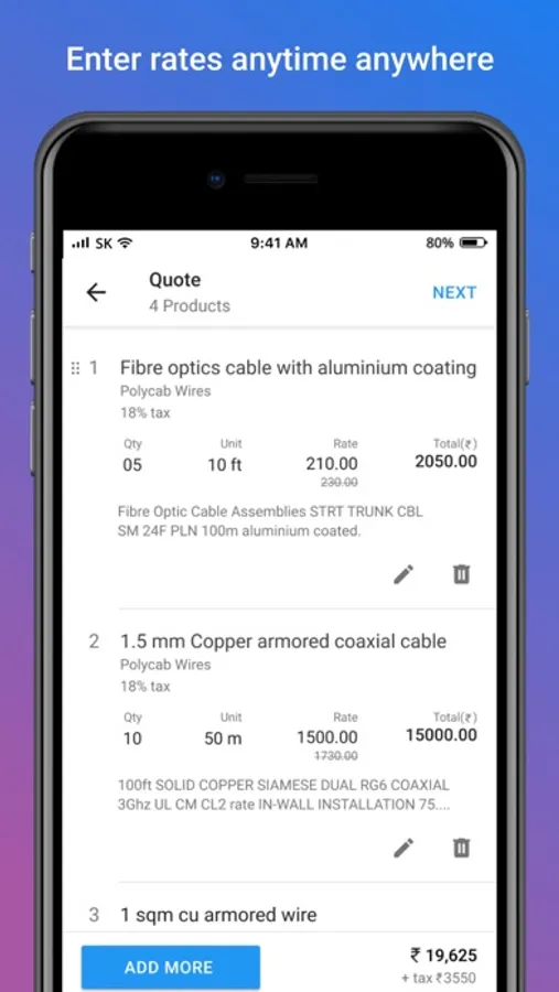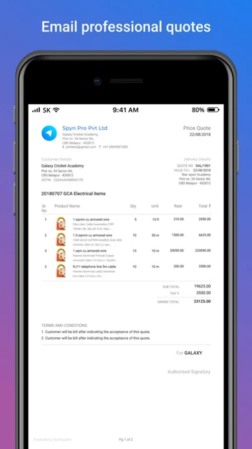 App to manage and send product quotations to prospective buyers.