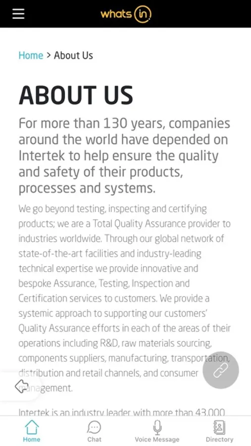 Intertek WhatsIn offers clients and employees real-time digital messaging:
