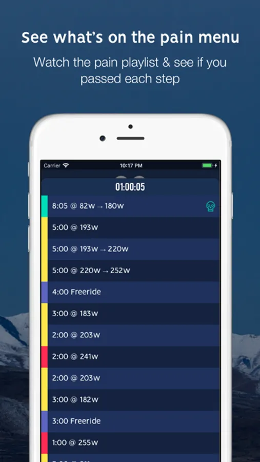As you progress through the workout you will be tested against each target power out put. Cyclists who hit the desired target will get a tick, the crosses mean you need to try harder.