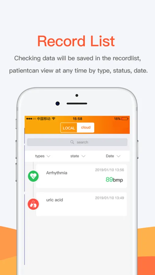•Permanently store all checking data and create professional health records. Provide a diagnostic reference when consult a doctor.