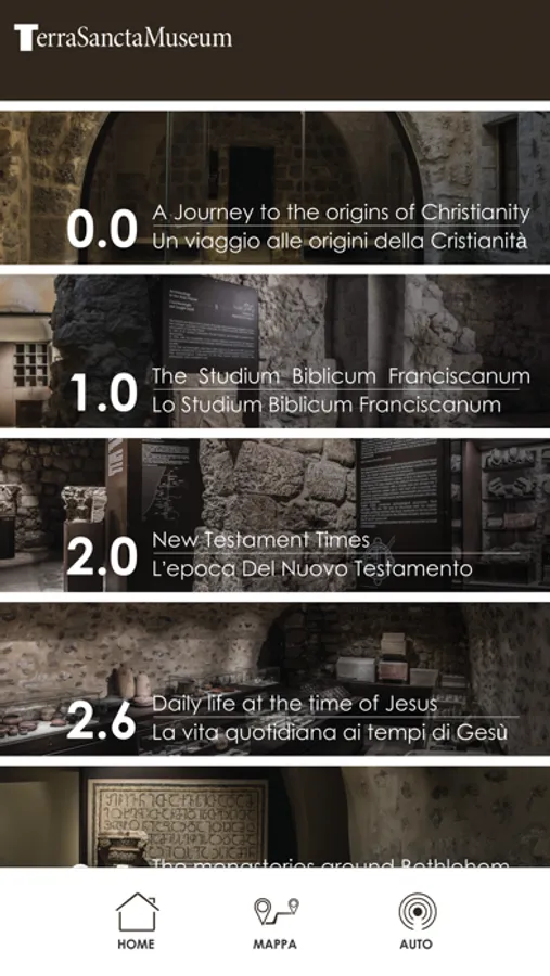 An agile and flexible tool that will guide you in the halls of the Terra Sancta Museum. All the contents, room by room, showcase by showcase, will be available on your smartphone. Download the "Terra Sancta Museum" App (Jerusalem Christian Museum) and the museum will speak to you directly in your language. You will discover the Franciscan archaeological adventure in the Holy Land according to your rhythms and your curiosities. New contents and details will be offered on request during and after the visit.