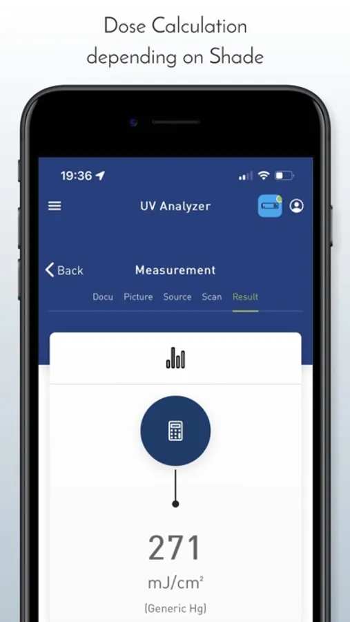 Measuring is quite easy. Put the strip on your substrate, irradiate it with UV and measure the strip with the stick. The app will show you the measured dose in mJ/cm². This dose value can be compared with your reference value. Reference values for the UV Analyzer are determined directly by you on site when the system is new. The measurements can be exported for quality assurance and documentation.