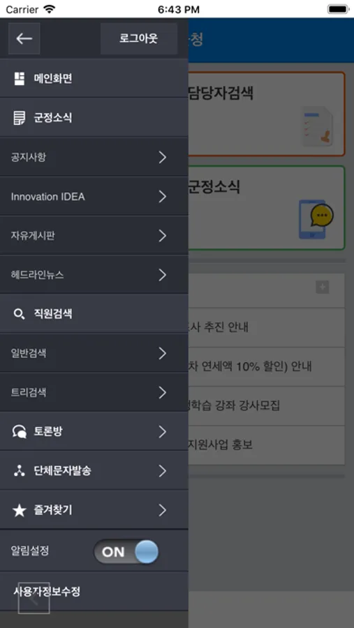 스마트폰을 통한 영동군청 직원들의 원할한 의사소통을 지원하고