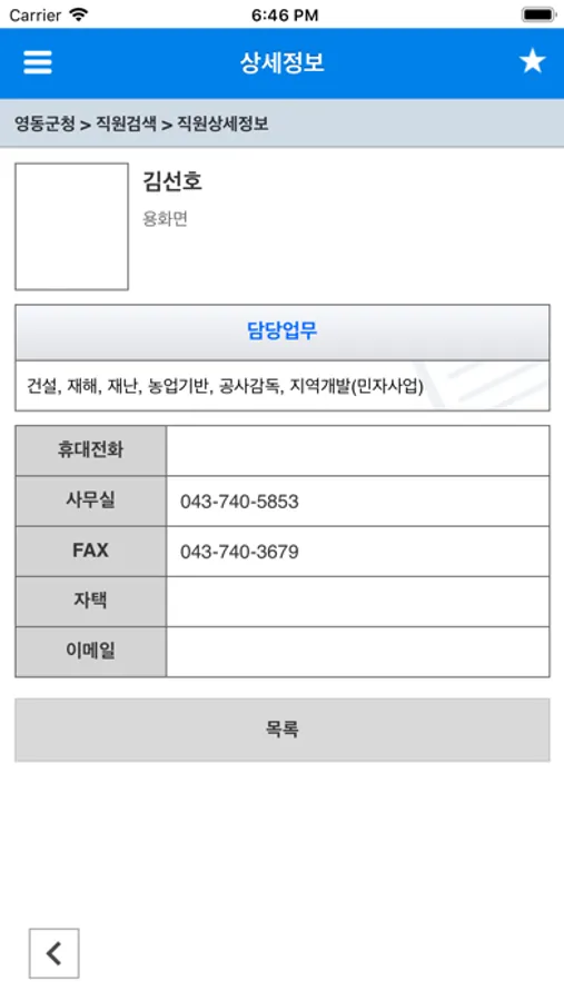 영동군청 직원연락망