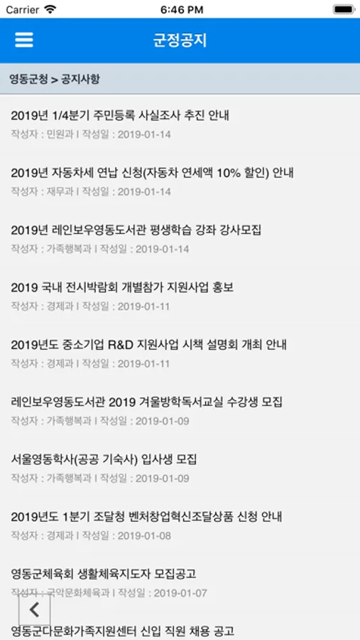 4. 영동군청 공지 기능