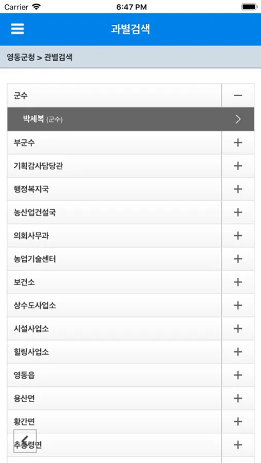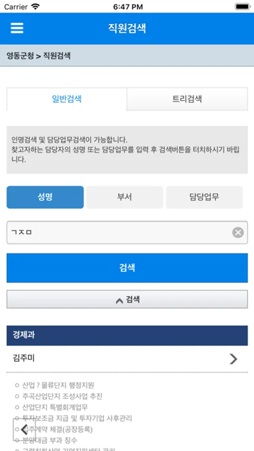 2. 민원 담당자 연락처 검색기능