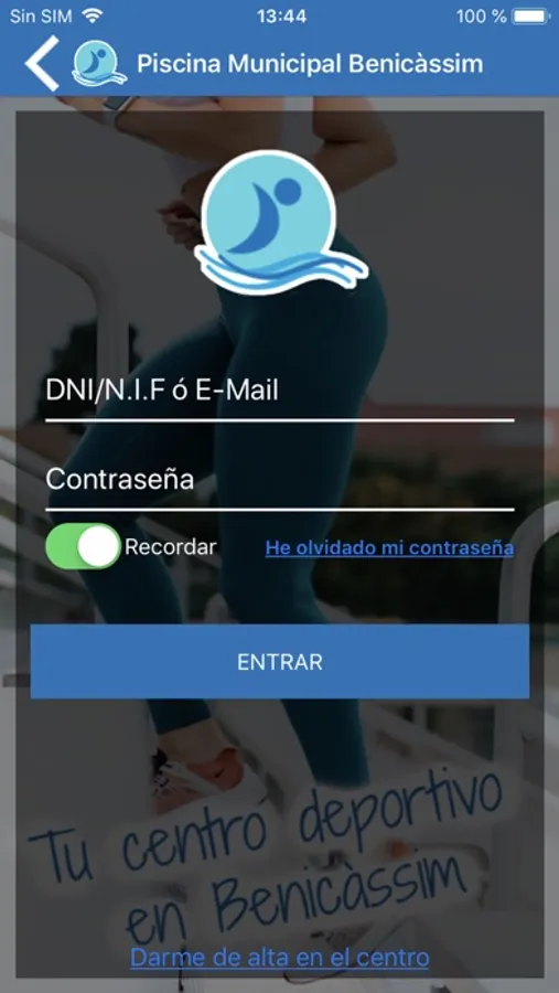 En caso de no recordar la contraseña, la puedes solicitar desde la propia Web pinchando en recordar contraseña o en la recepción del centro deportivo.
