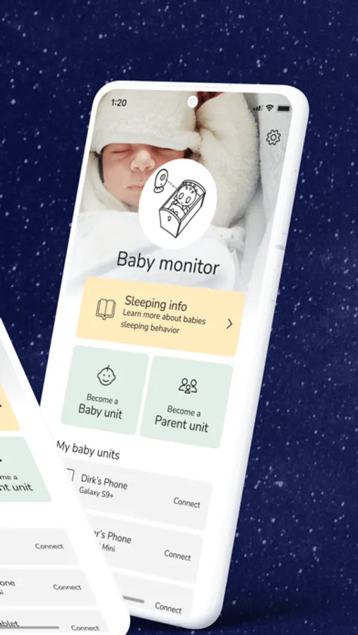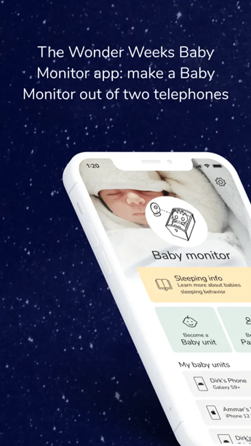 To use the baby monitor, you need two devices, and the app must be installed on both phones. One telephone stays next to your baby and you take the other with you. Simply link these telephones and you will always have your baby monitor at hand!