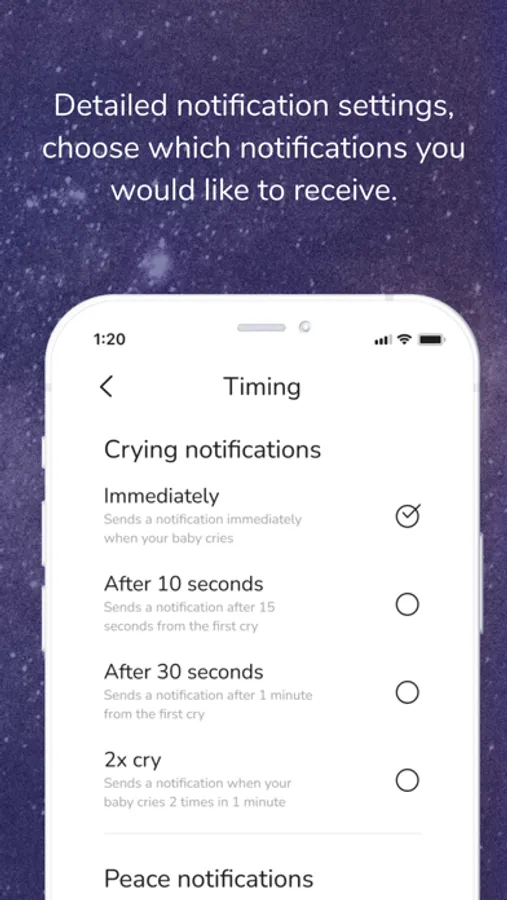 - Set the sensitivity yourself so that you only receive a notification when your baby is awake.