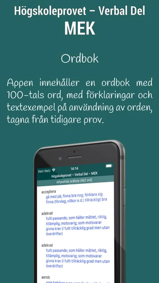 Berika ditt ordförråd, lär dig nya ord och kontrollera din ordkunskap genom att öva på tidigare prov i appen.