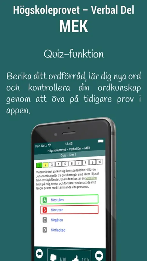 Du kan börja och använda appen direkt utan fördröjning och förbereda dig inför kommande Högskoleprov.